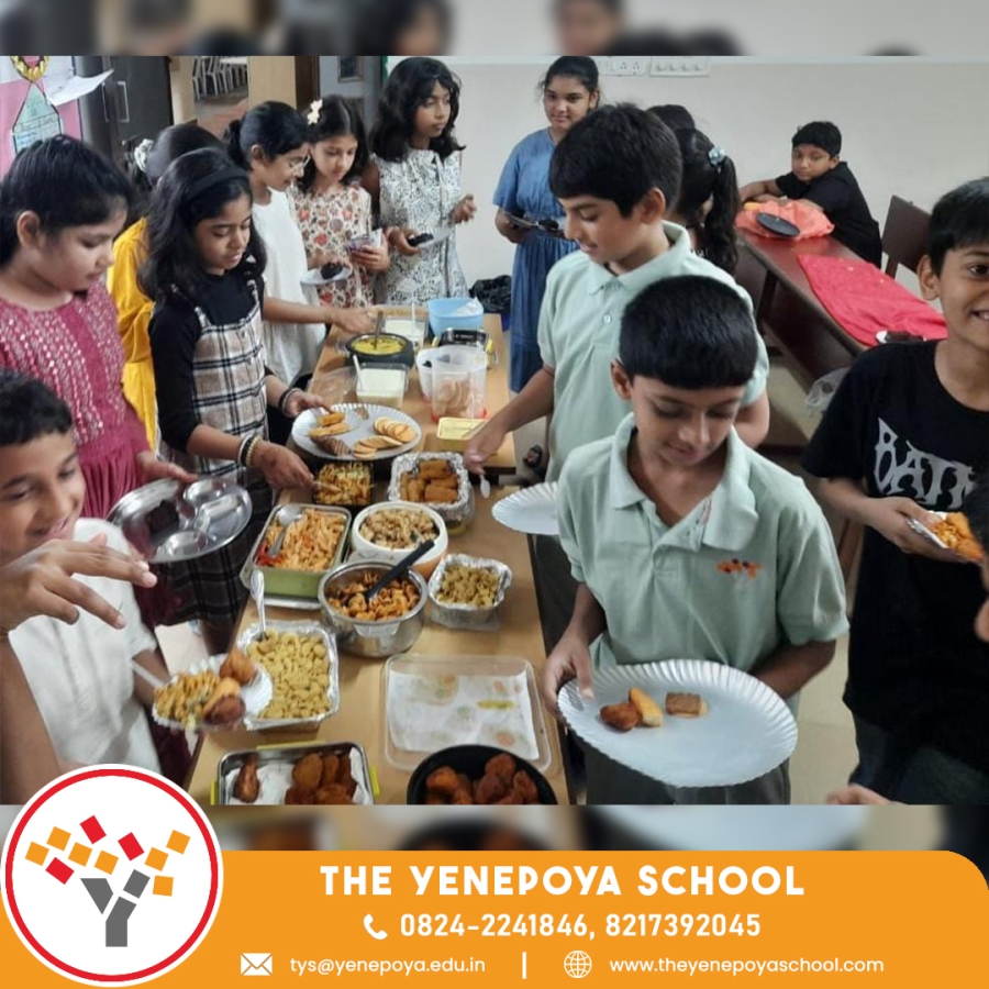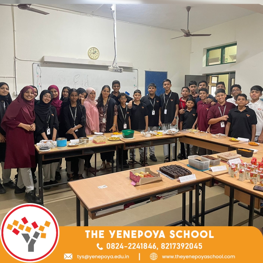 The Yenepoya School had organized Eid Sharing Party to commemorate Eid Al-Adha, for the students of Pre School to Grade 10 in the month of JUNE at the school campus.It was a delight to witness those cheerful hearts arranging the delicacies and decorating their classrooms.The campus was filled with the delicious aroma of savories and sweets. Each class was packed with the tempting savour of the flavoured nosh. The students also narrated the story behind the feast and about the importance of the day.It was a rejoicing moment for all.