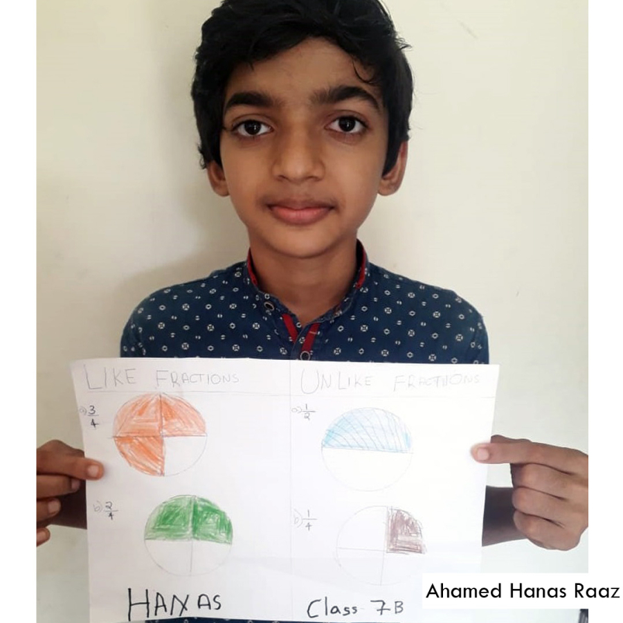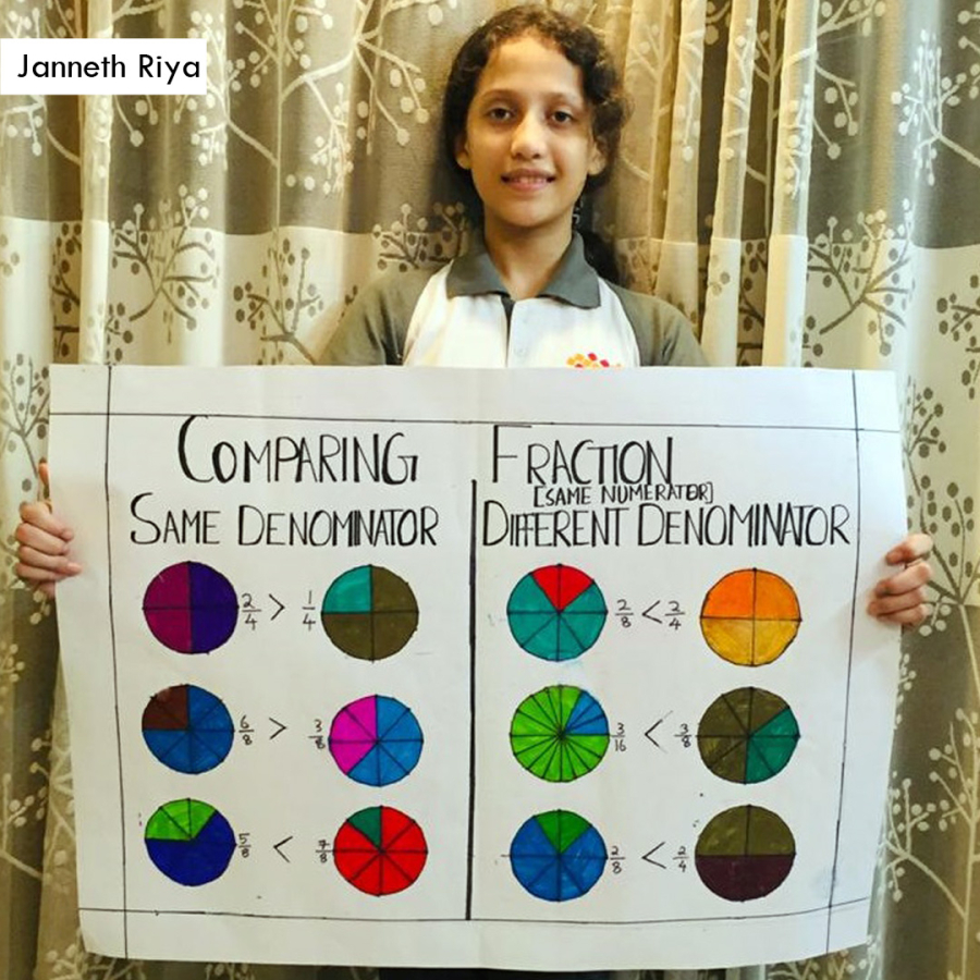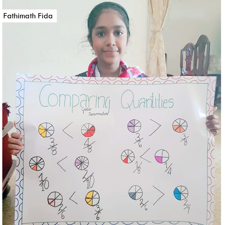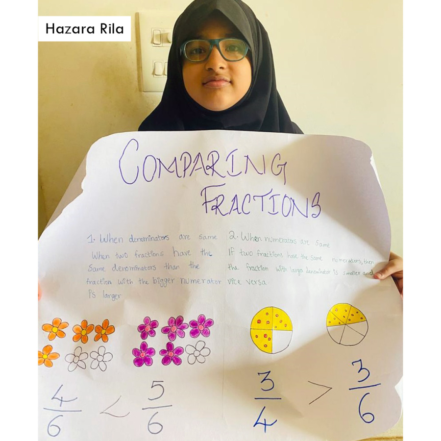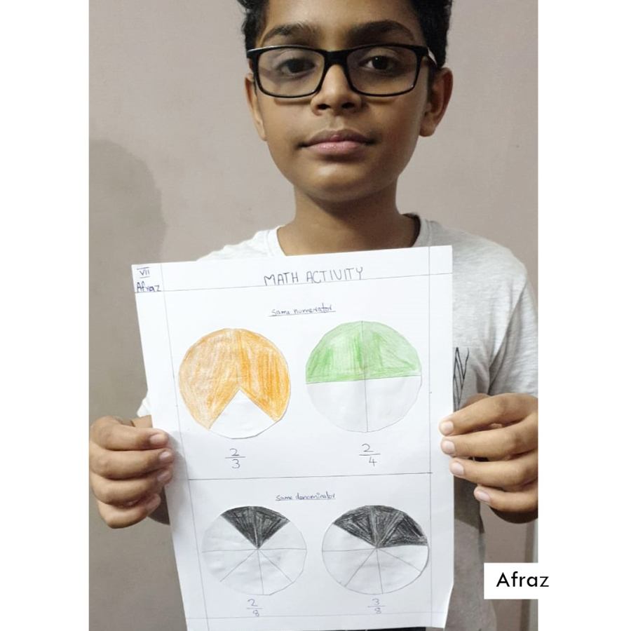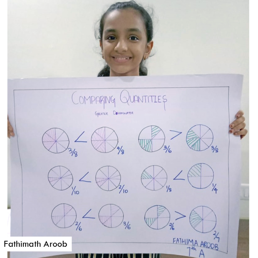 As a part of Math curriculum, students of Grade 7 were asked to prepare "Comparing Fractions" activity chart with the help of colourful pencils, papers. Students took part actively, showing some amazing creativity.