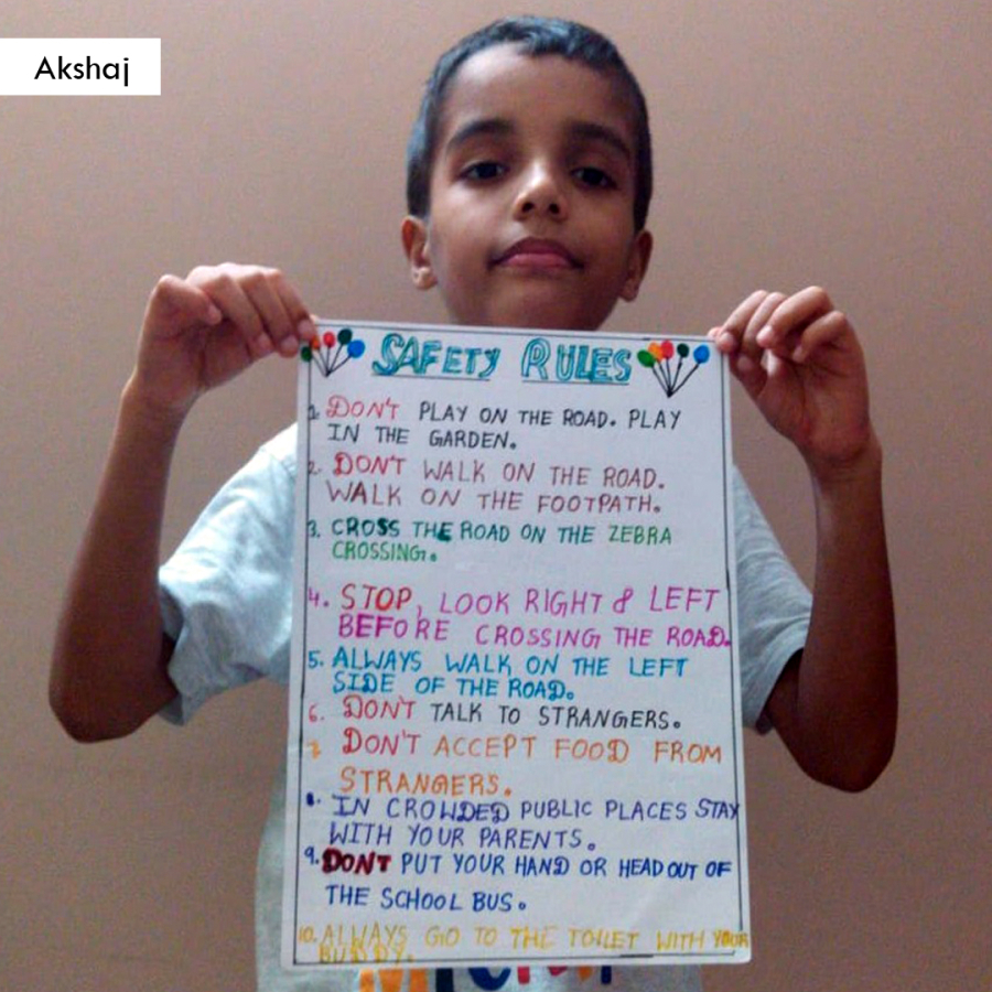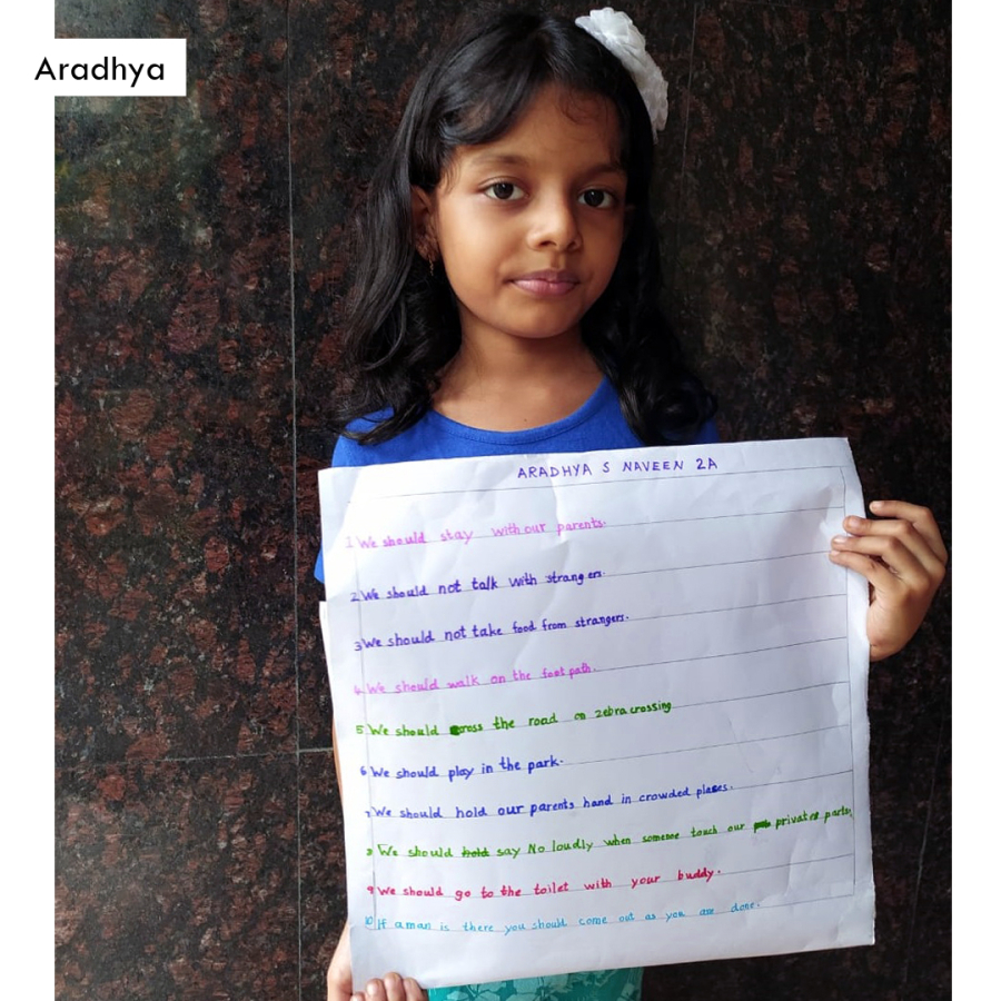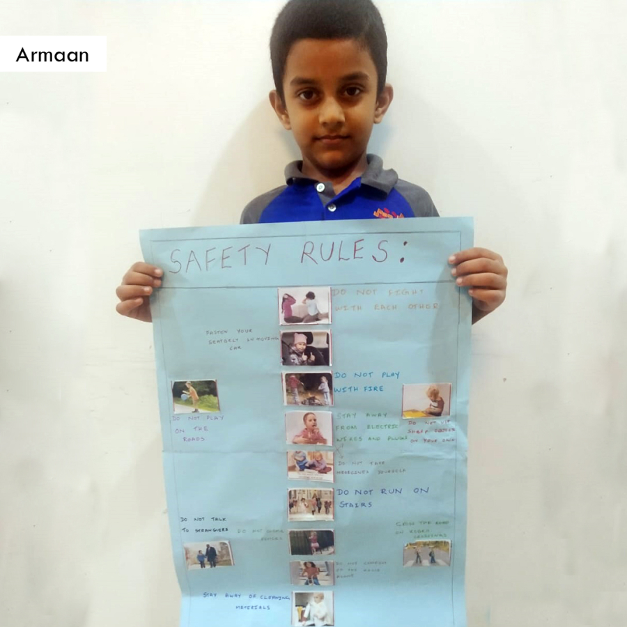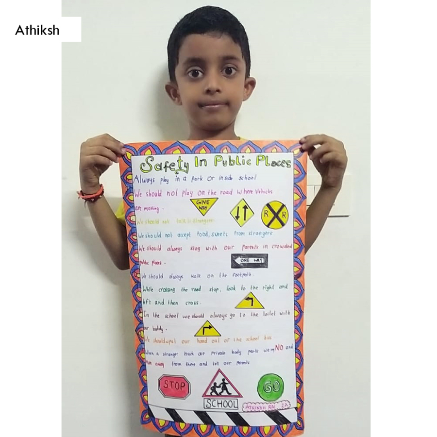 We appreciate the students of Grade 2 for their enthusiasm and active participation in the poster making activities.These activities are a part of their academics.The children were supposed to make a poster of Safety Rules as a part of EVS subject. The students were given instructions during the online classes. Our students have made us really proud!