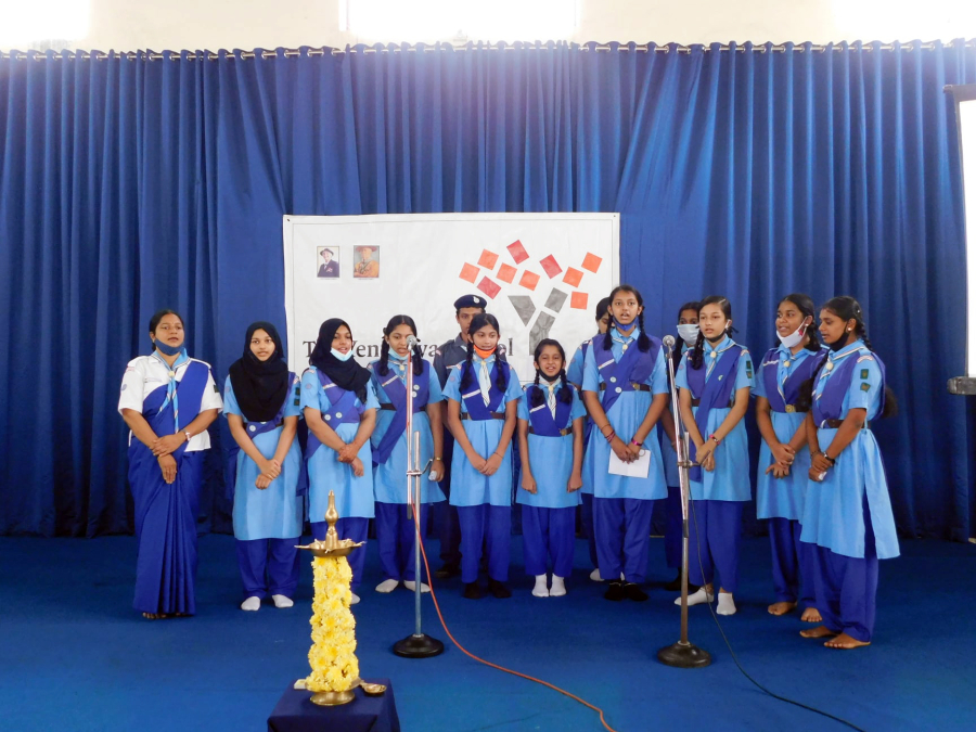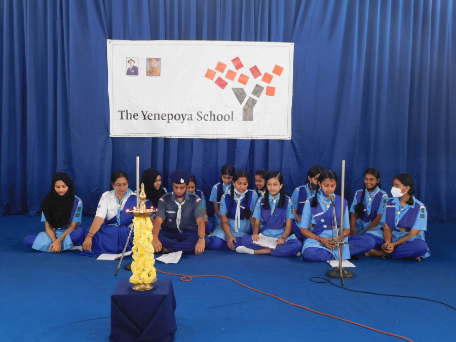 On the occasion of World Thinking Day and Founder’s Day, February 22nd, 2021, The Scouts and Guides of The Yenepoya School conducted a short programme to commemorate this day. The Programme began with the singing of the Scouts and Guides Prayer Song and recital of the Scouts and Guides Promise and Motto. Nishmitha of Grade 8, welcomed the the gathering. Further, the lamp was lit by the dignitaries, Mr. Joseph Mechirath, Principal, Mrs. Mishria Javeed, Campus Director, Mrs. Yvette Pereira, Coordinator and Mrs. Meera Ranjan, Guide Captain along with the Scouts and Guides School Patrol Leaders Rajath Shetty and Hafsa Shaaz. The Importance of World Thinking Day and Founder’s Day was read by Ananya Prasad and Khathija Soha read the Importance of Scouting and Guiding, after which the dignitaries, including the Principal, Campus Director and Guide Captain, addressed the gathering. During this programme Sri. P.G.R. Sindhia, State Chief Comissioner, Bharath Scouts and Guides, Karnataka, gave a talk to all the students, all over India. This talk was displayed to the students, through a video presentation. The programme was emceed by the Patrol Leader, Hafsa Shaaz, of Grade 9. The Programme culminated with the recital of the All Faith Prayer with a moment of silence and then followed by the handing over of a sapling to be planted by the dignitaries to the students, in order to fulfil their good turn of the day.