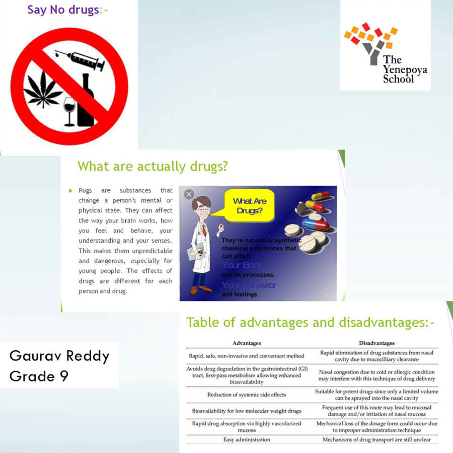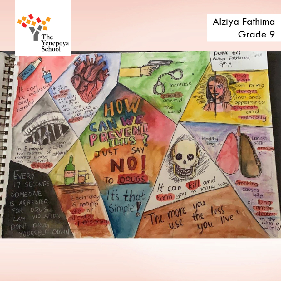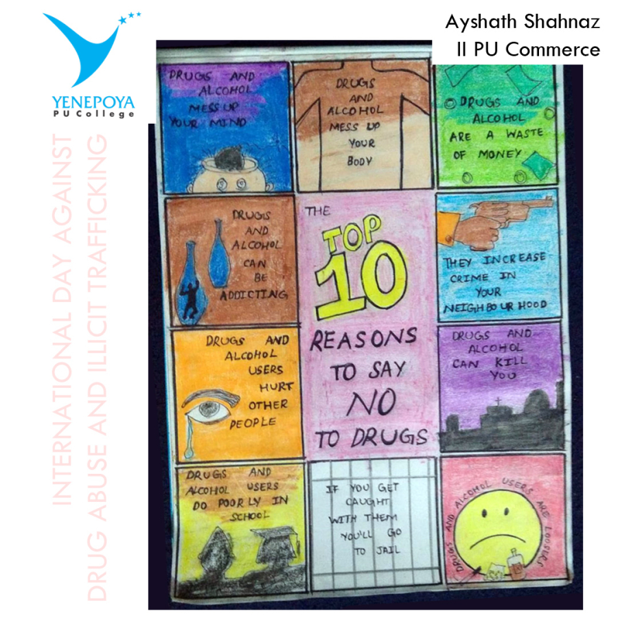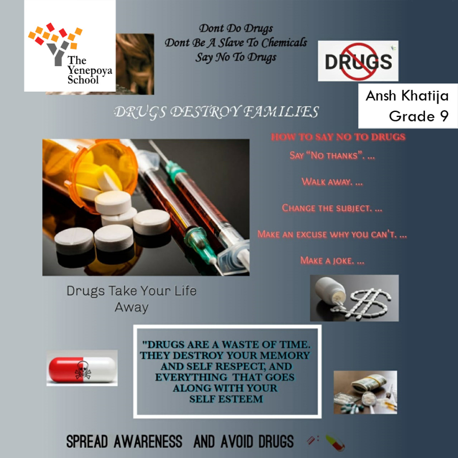 On account of this, we at The Yenepoya School and Yenepoya PU College, requested the students to make a poster or a short video, to raise awareness of the dangers of drugs and their use.