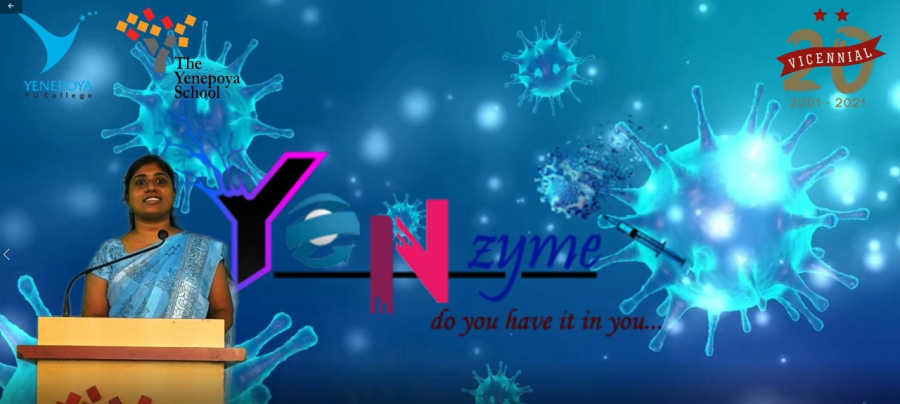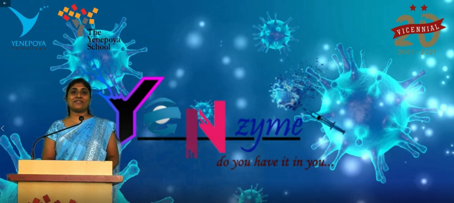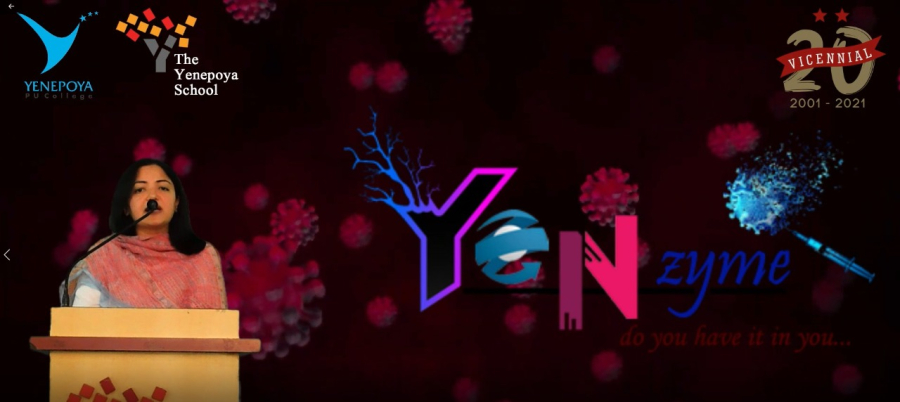 The inaugural ceremony of the interschool and intercollege PU event, "Yenzyme - 2021", commenced on 11 July 2021. The programme began invoking God’s blessings by Ms Jean and her team followed by school anthem. Our beloved Principal Ms Grace Noronha extended a warm welcome to everyone to this global contest .Thereafter our vibrant Campus Director Mrs Mishria Javeed addressed the gathering and said that this MEGA EVENT was the brain child behind the thought that we should do everything within our means to support the student community who are bearing the brunt of the current situation. The Campus Director then thanked the school managements and parents of the participating students for encouraging their students to be a part of the event. She then declared the competitions open and wished all the best to the participants. Then the Yenepoya faculty sang an innovative song "Go Corona" composed by our Admin Officer Mr Ravi Goyal, spreading awareness on corona virus. The programme was compered by Ms Gloria Rodrigues who proposed the vote of thanks.