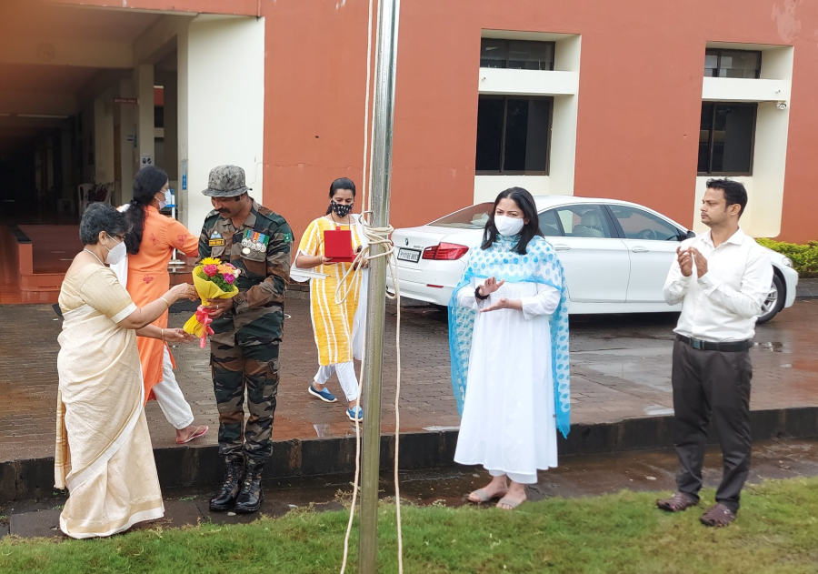 Mr Santhosh Kumar addressed the gathering and said that we must remember and commemorate the sacrifices of our freedom fighters. He shared his experiences in the army and said that the soldiers lived harmoniously like students in a school. He relayed glimpses of his experience about the life in the army.