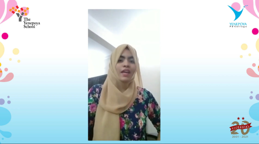 On the occasion of Teacher’s Day, the students of The Yenepoya School (TYS) and Yenepoya PU (YPU) College organized a programme to celebrate Teacher’s Day through a virtual platform. The programme began with a wonderful introduction by the MC, Anshu Mariam, a student of YPU College. This was followed by the invocation of God’s blessings with a prayer song and then school’s anthem was played which enthused all present, with pride for being a part of an institution which makes them hold their heads high. Afsha Shaaz of Class X welcomed the gathering showing warmth and gratitude to all those were present. Anushree enlightened us, on the importance of Teacher’s Day.