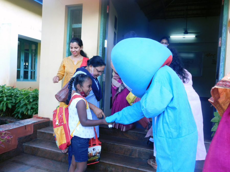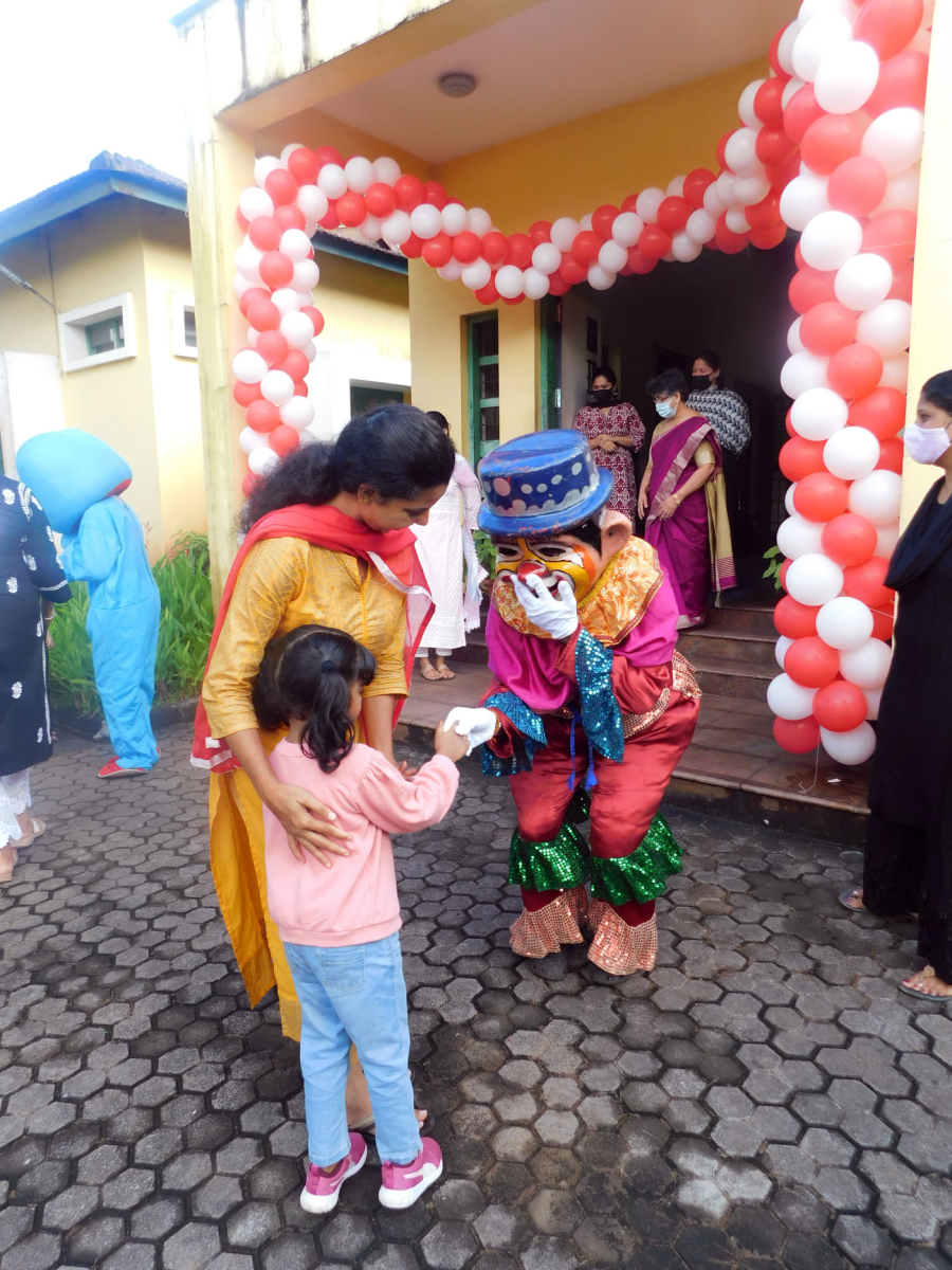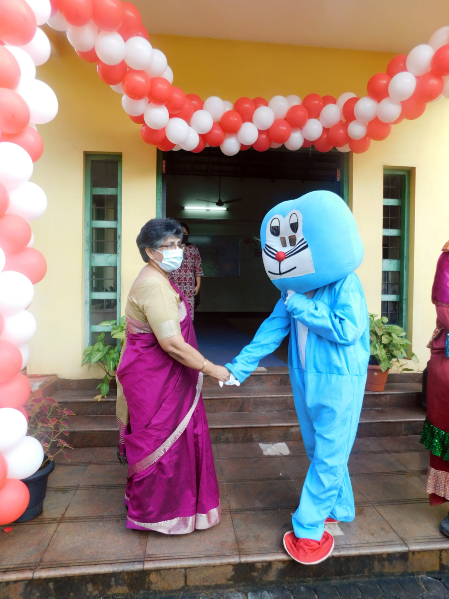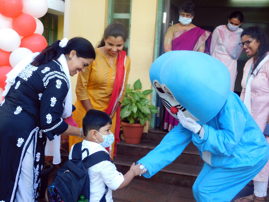 Every student was greeted with a hug by the Principal Ms. Grace Noronha and the Campus Director Ms. Mishria Javeed. The Montessori block was buzzing with activity in anticipation of welcoming the students. In addition, there was peppy music playing in the background, staff in costumes and the classes were well decorated.