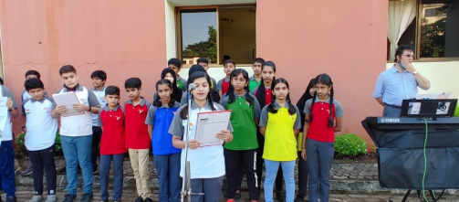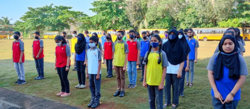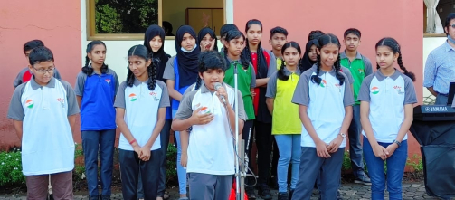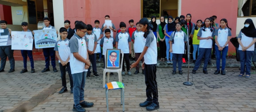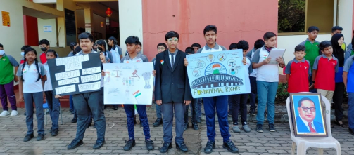 Qaayim Bin Tariq was the MC of the programme. The thought for the day was read by Sudhanshu Shetty followed by Manisha Suresh highlighting the importance of the day. All the students of Class 7C enacted a skit with Raihan Ahmed dressed up as Dr. B.R. Ambedkar in memory of the events of the Constitution day. Our Principal Mrs Noronha, briefed the students on the importance of Constitution Day and rights and duties of citizens of India. Lastly the vote of thanks was delivered by Muhammed Simil Rashid. The assembly concluded with the National Anthem.