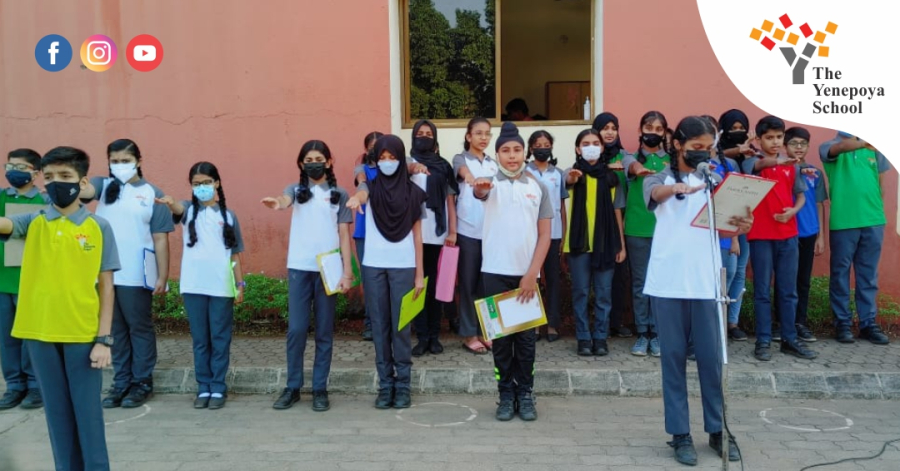 This was followed by a poem recitation by C Shivani . Hisham Nafeesa Haider took the pledge on behalf of the student body. The assembly then concluded with the National Anthem.