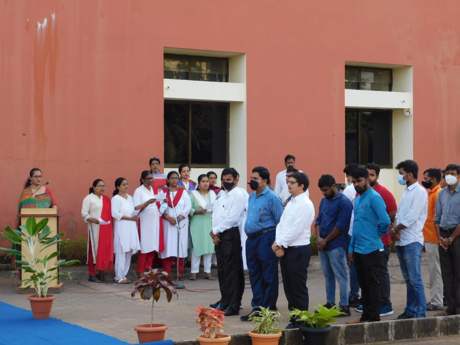 The Programme was compèred by Mrs Merlin Menezes. Ms Jesvita Quadros welcomed the gathering following which Mr Chethan Gatty guided the dignitaries for the Flag hoisting. After the hoisting of the flag by our Campus Director, Mrs Mishria Javeed, a patriotic song was played and the National Anthem was sung by all present. Mr Fredrick Vaz led all present to take a pledge to renew our vows of allegiance towards our nation on behalf of the entire school and college faculty.