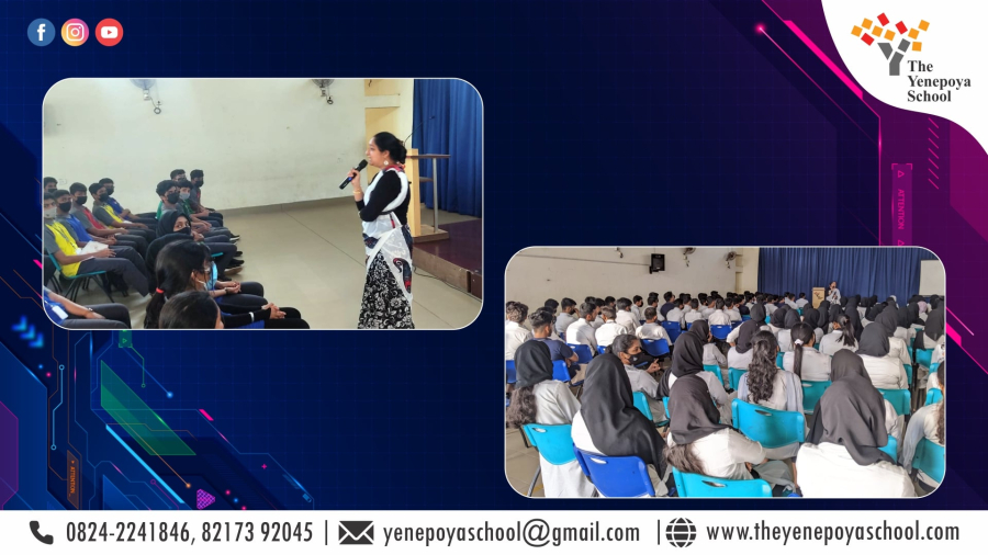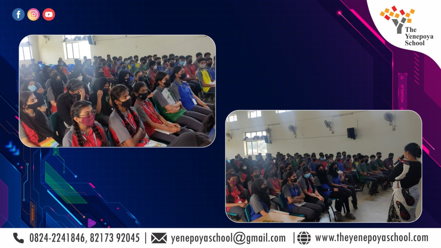 A workshop on Cybersmart was organised for the students of Class 9 & 10 in the auditorium of The Yenepoya School on the 7th of February, 2022, organised by Inchara Foundation. The workshop was conducted by Ms. Manjori. She stressed on the importance of the dangers and also provided safety measures while dealing with the cyberspace. The workshop was interactive, providing students with a Q & A session. The workshop raised awareness among our students and prompted them to be more aware while using social Media, sharing passwords and pin codes of their ATM and banking details.