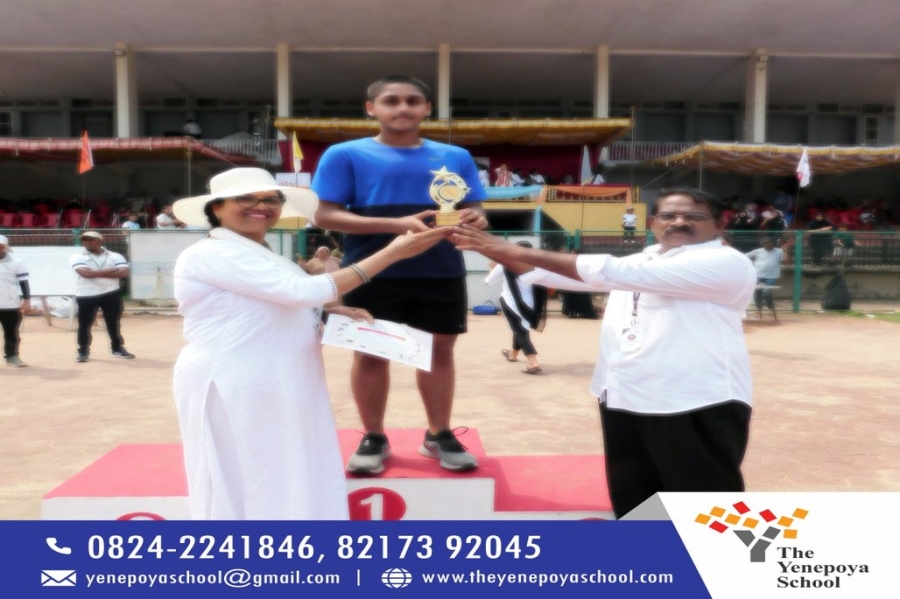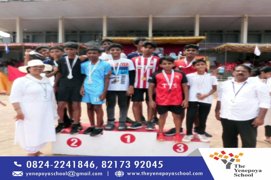 The Yenepoya School organized their Annual Sports Meet at Mangala Stadium, Mangalore, on Wednesday, 18th October 2023 with great enthusiasm. The programme began with an official opening ceremony that was hosted by Ms. Hiba Ebrahim. Mr. Shashank J Rai, Deputy Range Forest Officer, was present as the Chief Guest. The gathering was welcomed by the Campus Coordinator, Mrs. Euvet Pereira. Students of different houses of TYS flaunted their confidence with a convincing march that was led by the school Head Boy, Mr.Rahil Ibrahim and the school Head Girl, Ms. Kadeeja Afrin. The school band, NCC wing and house captains were introduced to the Chief Guest. The torch bearers of the Olympic Flame, who are achievers in various sporting activities, pulled off the run with great spectacle. Abdul Wafi Hakeem handed the torch to Thalha that was followed by Jaffer Kader, Diya and the sports captains, Havva Siyana and Samith Xavier. The meet was declared open by releasing the balloons and the Sports Captain, Havva Siyana, read out the oath. Students of NEP 2 and 3 displayed an amazing drill that combined dance and exercise. Ms. Kadeeja Afrin proposed the vote of thanks and soon after, the track events took place. As per the categories, students from grades 3 to 12 participated in 100 mtrs, 200 mtrs, 400 mtrs and 800 mtrs dash. Everyone cheered for the participating students as they displayed great fervour. Medals and certificates were distributed to the winners. The relay races snatched a breath away from the audience. The Valedictory Ceremony began with lowering the school flag and handing it over to the sports teachers. The National Anthem was played and TYS celebrated yet another successful event under it's glorious banner.
