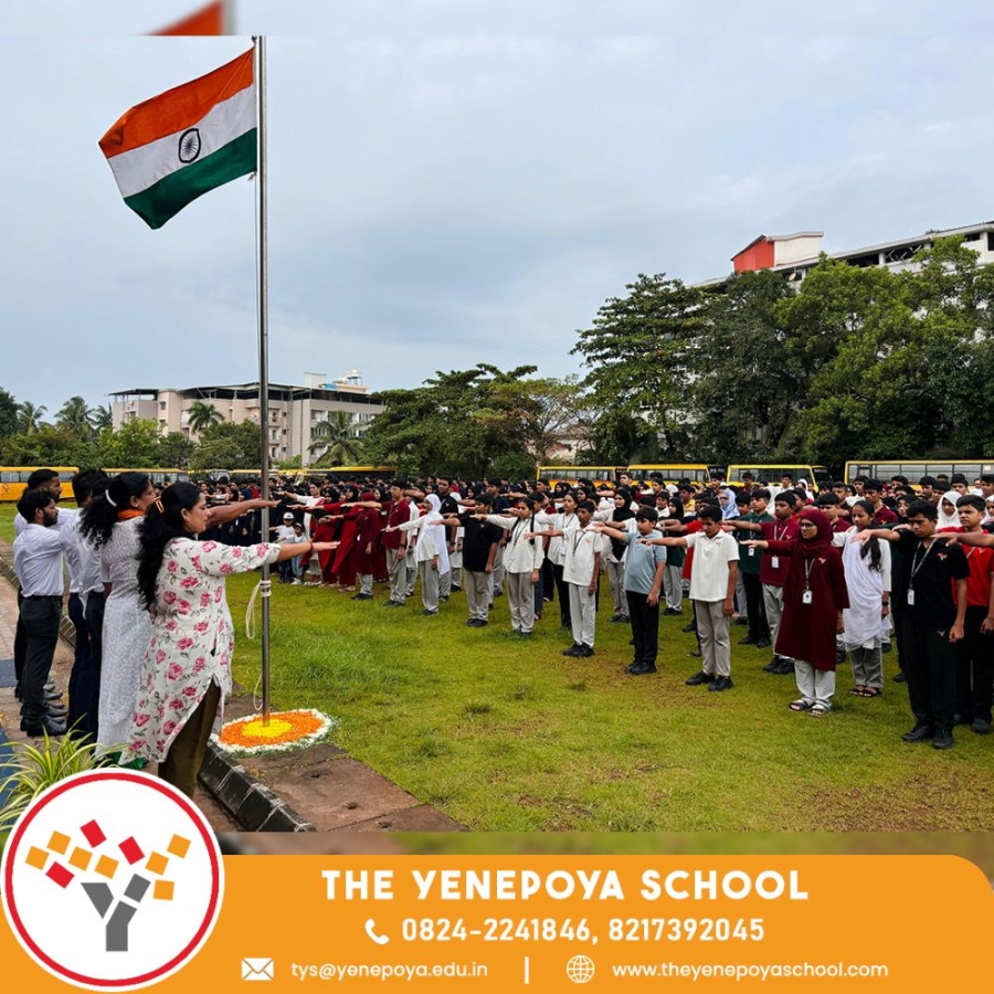 On 15th August 2024, The Yenepoya School &Yenepoya PU College commemorated Independence Day with great fervor. The celebration commenced with an invocation, filling the atmosphere with a sense of reverence and purpose.
