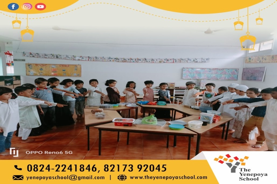 The Yenepoya School and Akshara House of Children organised Eid Sharing Party to commemorate Eid Al-Adha, for students from preschool to grade 12 on Monday, 3rd July 2023 at the school campus. It was a delight to witness our little ones of NEP 1 in traditional attires. The campus was filled with the delicious aromas of savouries and sweets. Each class was packed with the tempting savour of the flavourful nosh. It was a feast that was absolutely enjoyed by all.