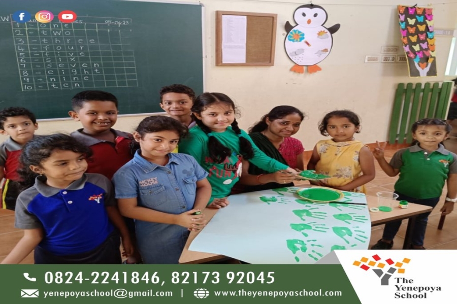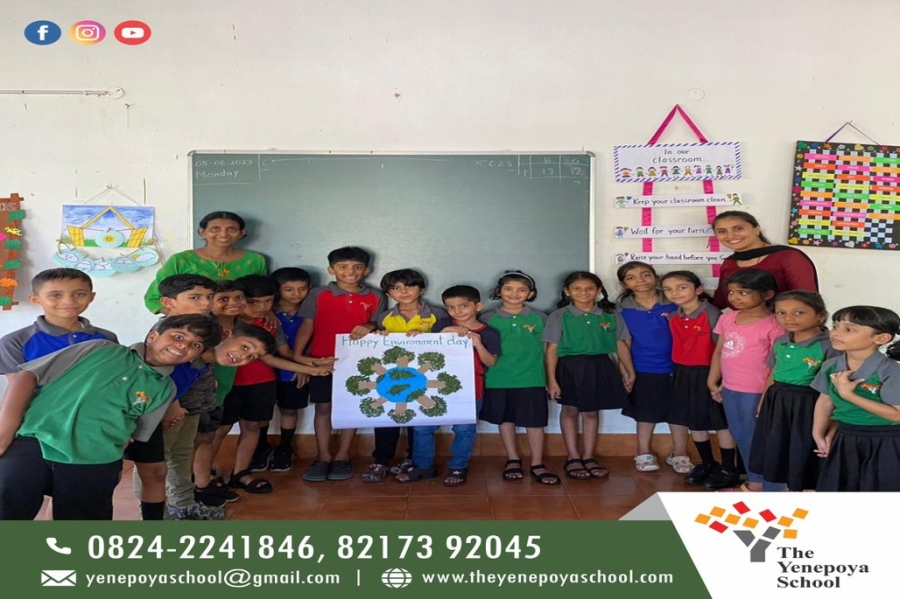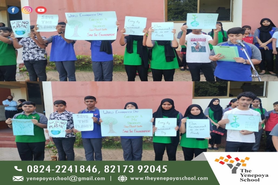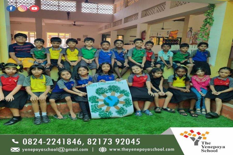 Every day when we wake up, we see how nature plays a vital role in our life and to appraise this charm, we specifically celebrate Environment day to honour the beauty that nature is. It is a day on which we spread awareness about the environment and the need to conserve it, to advocate for a greener environment and conservation of nature. Students of The Yenepoya School celebrated World Environment Day on Monday, 5th June 2023 at the school campus with great enthusiasm and zeal. Students of NEP 1, 2 and 3 engaged themselves in a variety of events. Special assemblies were conducted by students who were mentored by their respective teachers and Excellence Managers. Principal and Chief Academic Officer were present for the occasion. Students of grades 1 and 2 were shown videos and had collage making activity. Students of grade 3 to 5 had activities where they planted seeds, made placards and collages to show how much they care about mother earth. Students of grade 6 to 8 highlighted the theme of this year's World Environment Day, which was "Ecosystem Restoration." The students were dressed in green costumes and carried posters and placards, spreading the message of environmental conservation. As part of the celebrations, the students also organized a tree plantation drive in the school premises. They planted saplings and pledged to take care of them. Overall, the program was a great success and served as a reminder to all of us to take responsibility and do our part in protecting the environment. It was an excellent opportunity for students to learn about environmental conservation and ways to contribute towards a better planet.