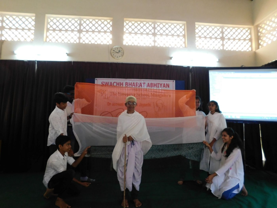 We celebrated Gandhi Jayanthi on 2nd October in the school auditorium to commemorate the birthday of Mahatma Gandhi , a pioneer of truth and non-violence. The programme began with the morning assembly by the students of grade 9A, highlighting the significance of the day. The programme started off with a prayer followed by garlanding the portrait of Gandhi. The students saw a power point presentation on Gandhiji’s life and reflected on the great work done by him for India. The students paid homage and sang Gandhiji’s favorite song “Raghupati Raghav Raja Ram which was followed by a dance as a tribute to him. A mime was presented by the students on the theme ‘Unity in Diversity’.