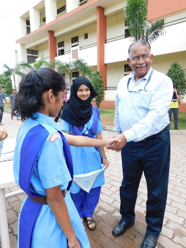 The Investiture Ceremony of the Bharath Scouts and Guides (BSG) of The Yenepoya School, was held at the School Campus. The Ceremony began with the BSG Prayer Song, Flag Hoisting and further with the Oath-Taking Ceremony for the Students receiving the Pravesh Badge and Scarf. The Oath-Taking Ceremony was led by Shaaz, Patrol Leader and the Badges and Scarfs were distributed by The Prinicpal, Mr. Joseph Mechirath, Campus Director, Mrs. Mishria Javeed, Vice-Principal, Mrs. Reshma Nayak, Guide Captain, Mrs. Meera Ranjan Kanchan along with The Physical Education Teachers, Mrs. Shilpa Shetty and Mr. Chethan Gatty. The Programme was Emceed by Malavika Prashanth of Grade 8A.